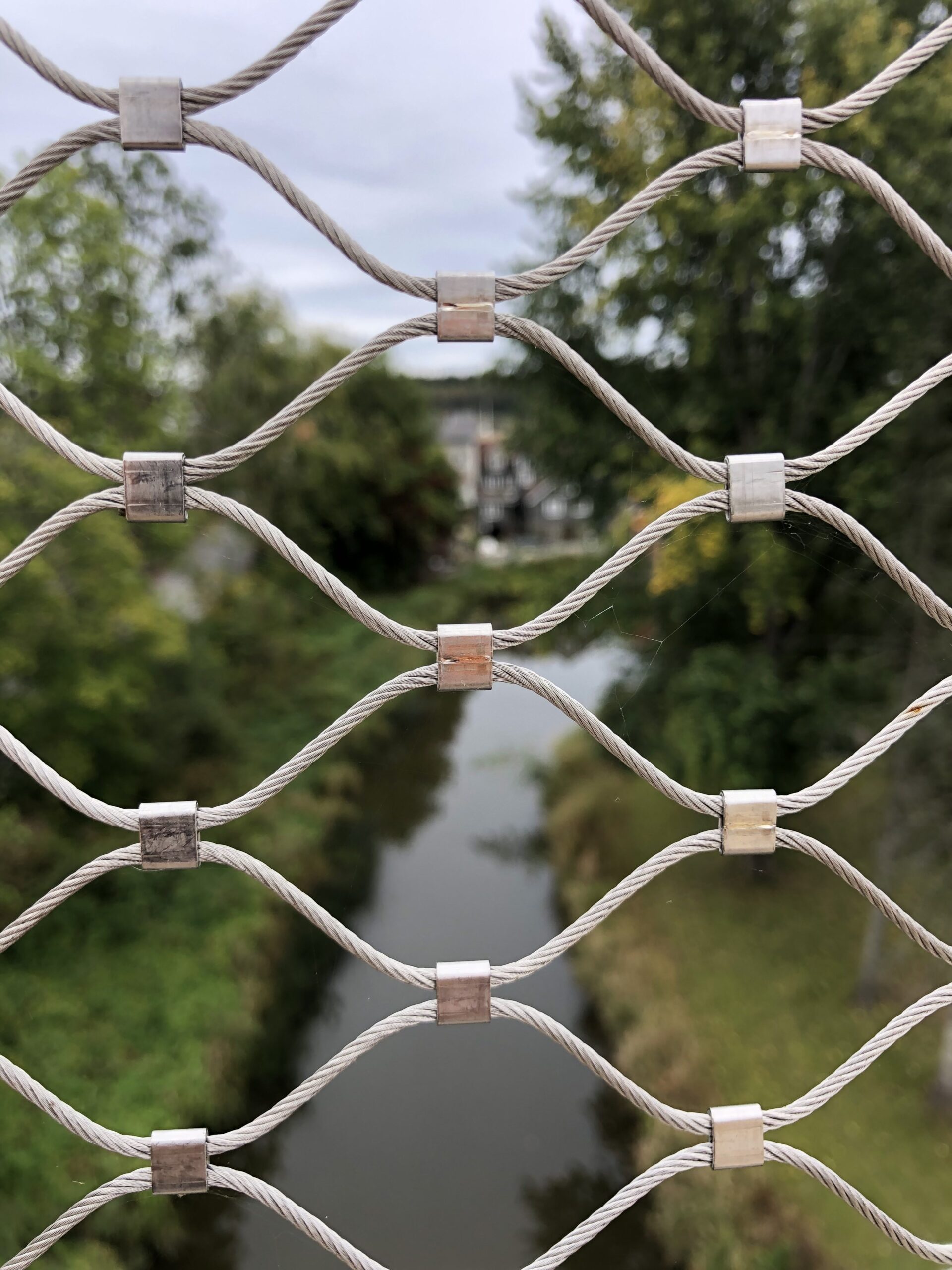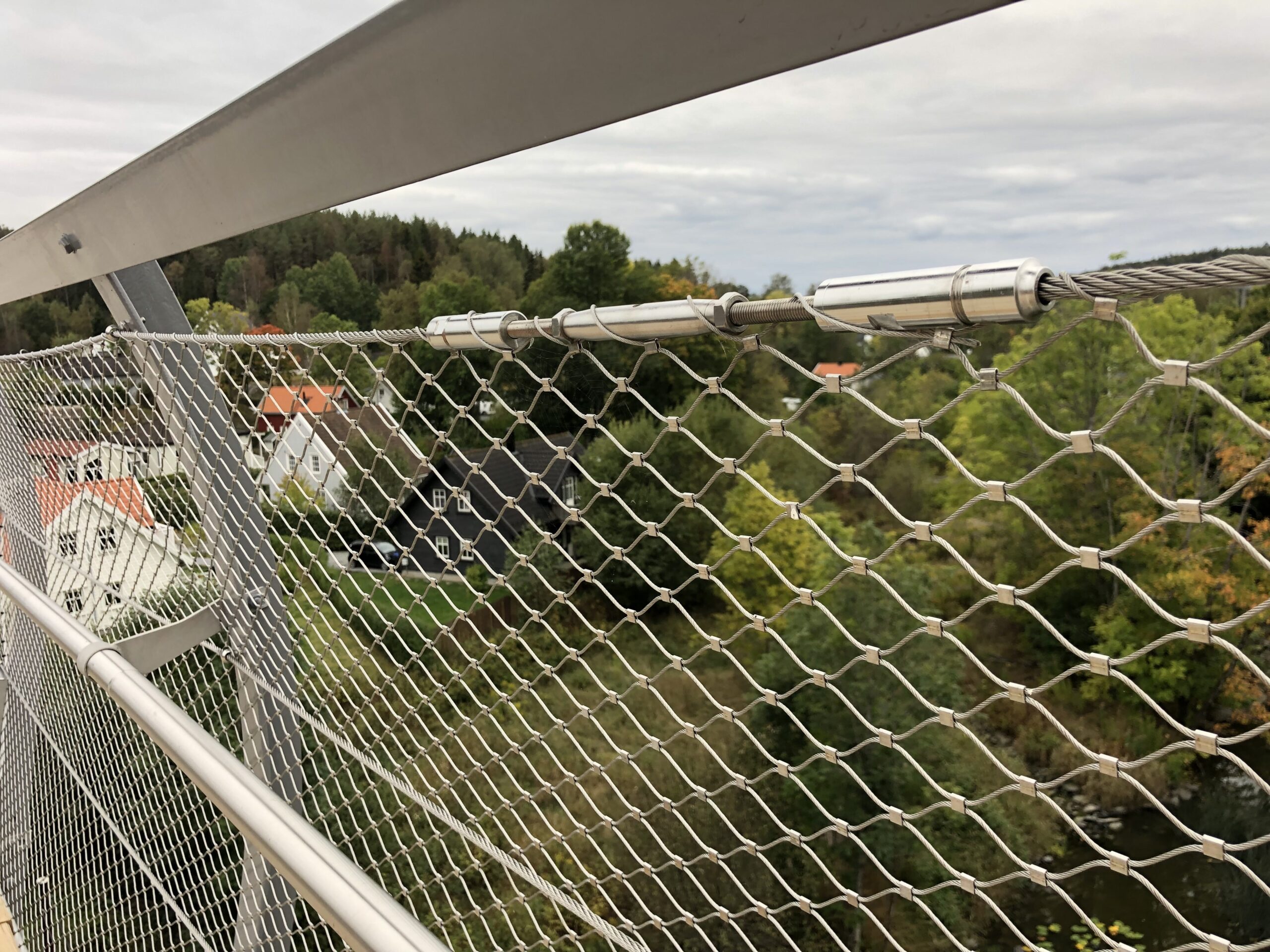 I rekkverket er det brukt X-TEND vaiernett spent opp med I-SYS vaiersystem. Resultatet er et sikkert rekkverk som hverken sperrer for utsikten, eller tar oppmerksomheten bort fra den spektakulære brokonstruksjonen.
