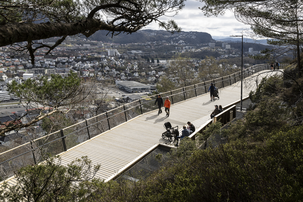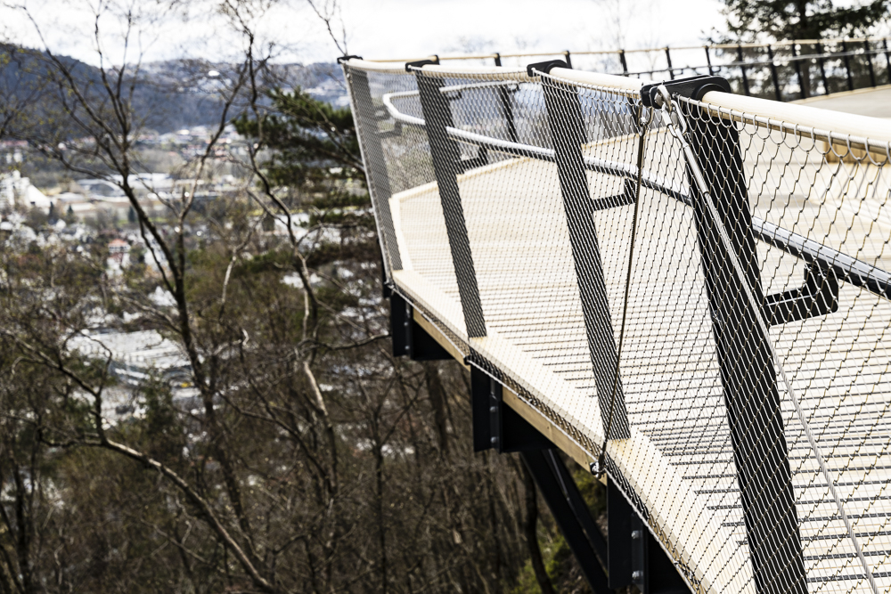 Gangbroen er et imponerende byggverk og byr på flott utsikt mot byen og Bergensdalen. Utsikt skal ikke ødelegges av tette rekkverk og derfor ble X-TEND vaiernett valgt som rekkverksfyll. Det gir en sikker barriere uten å ta oppmerksomheten bort fra hverken utsikten eller den spektakulære brokonstruksjonen.